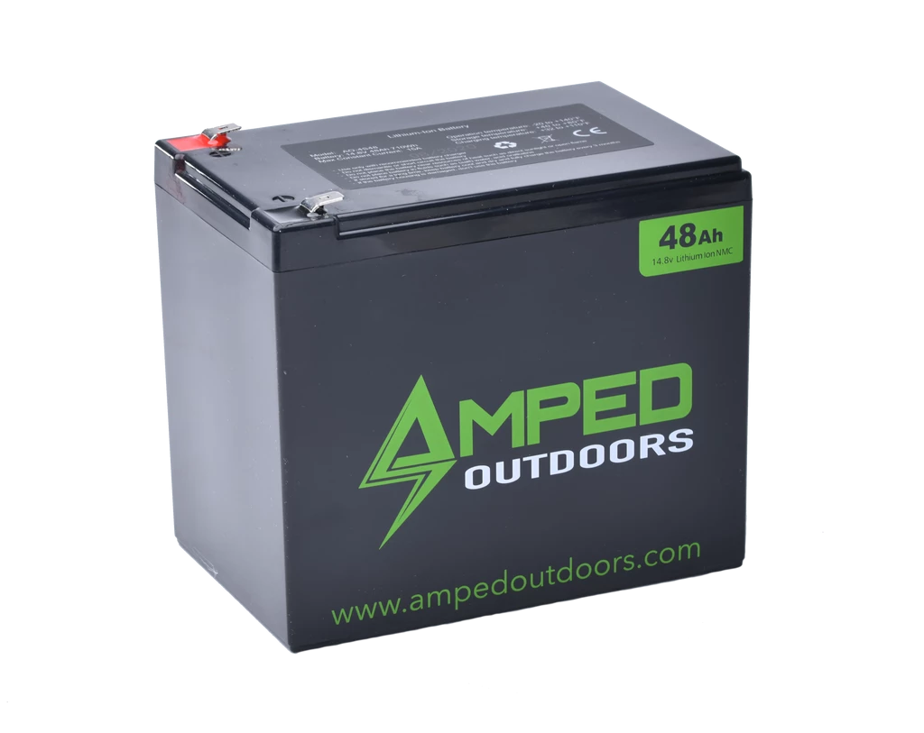 Why 14.8V NMC Lithium Ion? Since most of our fishing electronics today are made to operate up to 17+ volts, this battery has a working voltage of 16.8V when fully charged and 12V when fully depleted. That means you have the most usable capacity and zero worries of low voltage poor returns/images from your electronics. Unlike the competition selling similar NMC batteries (Usually 11.1V), our batteries use only the best NMC Lithium from Japan. Instead of getting 300-400 charge cycles with NMC from others, Amped Outdoors NMC will give you 800-1000 Charge cycles and a longer life expectancy.