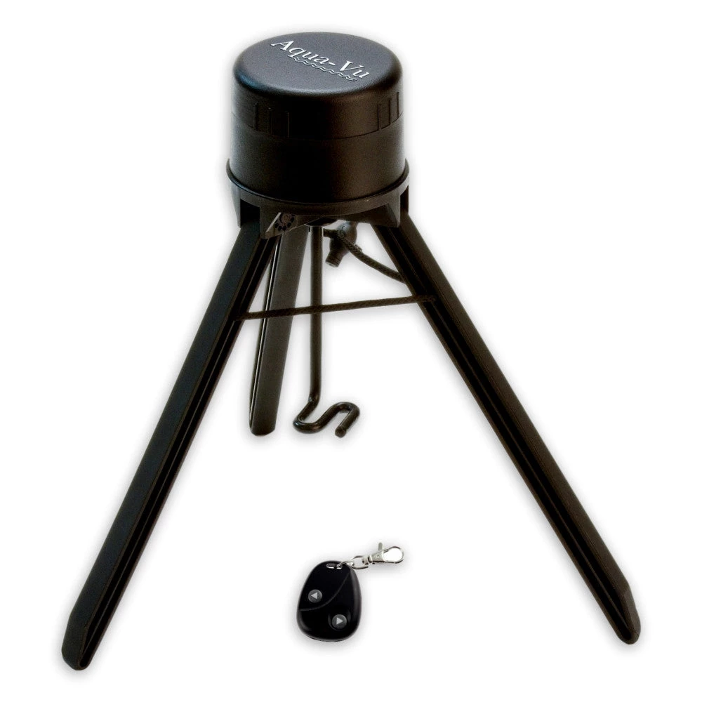 The Motorized Ice Pod 3 holds your underwater camera stable at any depth, and allows you to rotate the camera with a wireless remote control to follow the action or locate your lure. It operates on 2 AA batteries.