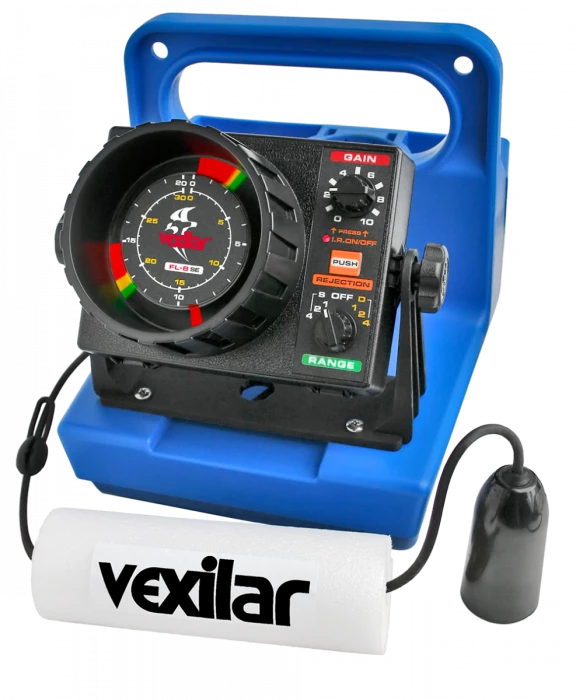 The classic Vexilar flasher is truly legendary. The world’s most popular three‑color sonar flasher, the FL‑8se is still one of the best all-around flasher/sonar designs. The hallmark three‑color display shows weak targets in green, medium strength targets in orange and strong bottom targets in red. The FL-8se features ten interference rejection settings.